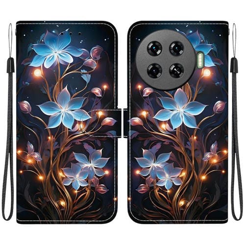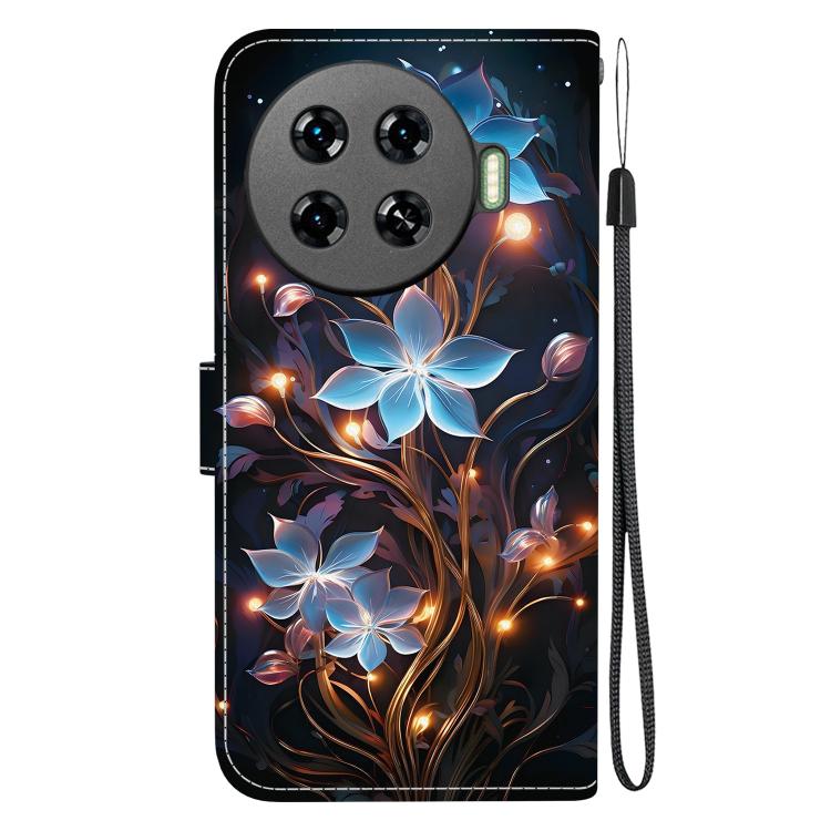 Funda de Cuero para Tecno Spark 20 Pro+ 4G con Dibujo y Textura de Cristal (Flor de Linterna Pequeña)