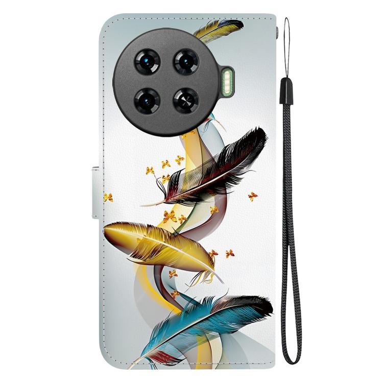 Funda de Cuero para Tecno Spark 20 Pro+ 4G con Dibujo de Colores y Textura de Cristal (Plumas de Mariposa Doradas)