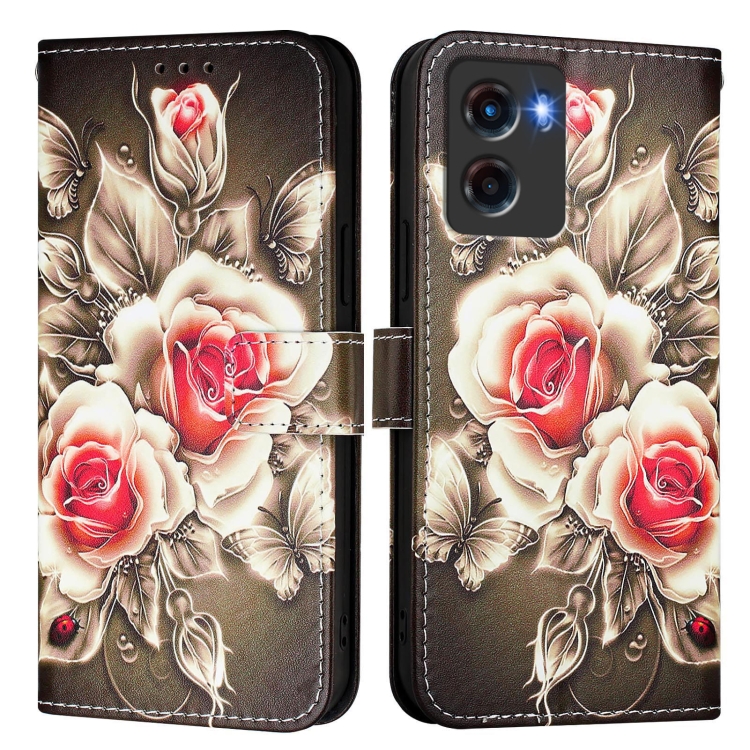 Funda de Cuero para Motorola Moto G05 con Diseño de Dibujos (Rosas Sobre Negro)