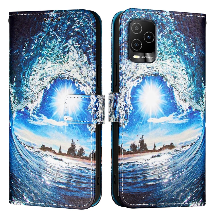 Funda de Cuero Blu View 5 Pro con Diseño Dibujos Ondas y Sol