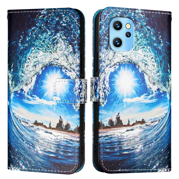 Funda de Cuero para Umidigi Power 7 Max con Diseño de Dibujos en Colores Lisos (Ondas y Sol)