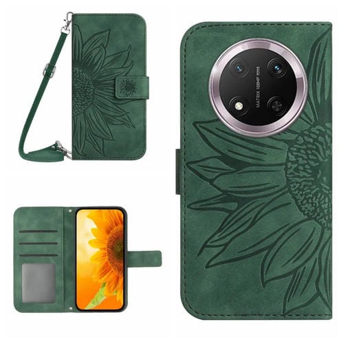Funda de Cuero Honor X9C con Diseño de Girasol y Cordón (Verde)