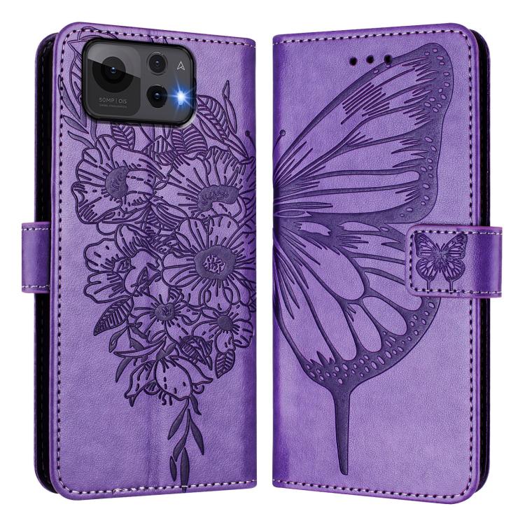 Funda de Cuero Asus Zenfone 12 Ultra con Diseño de Mariposa en Relieve (Morado)