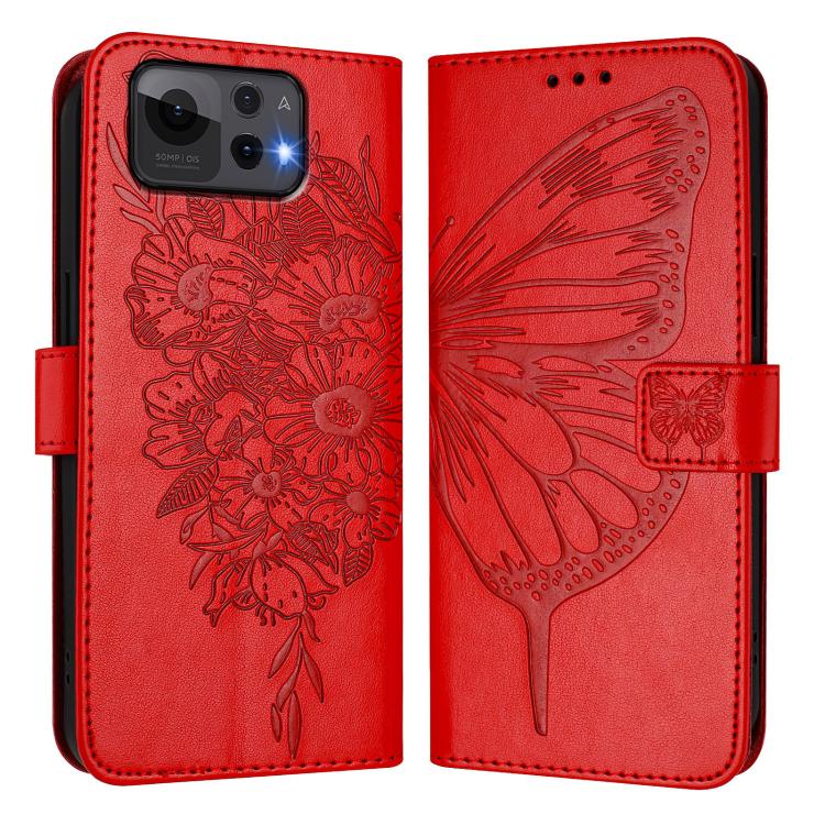 Funda de Cuero Asus Zenfone 12 Ultra con Diseño de Mariposa en Relieve (Roja)