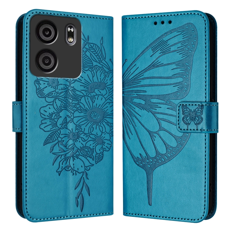 Funda de Cuero Blu View 5 Diseño Mariposa en Relieve (Azul)
