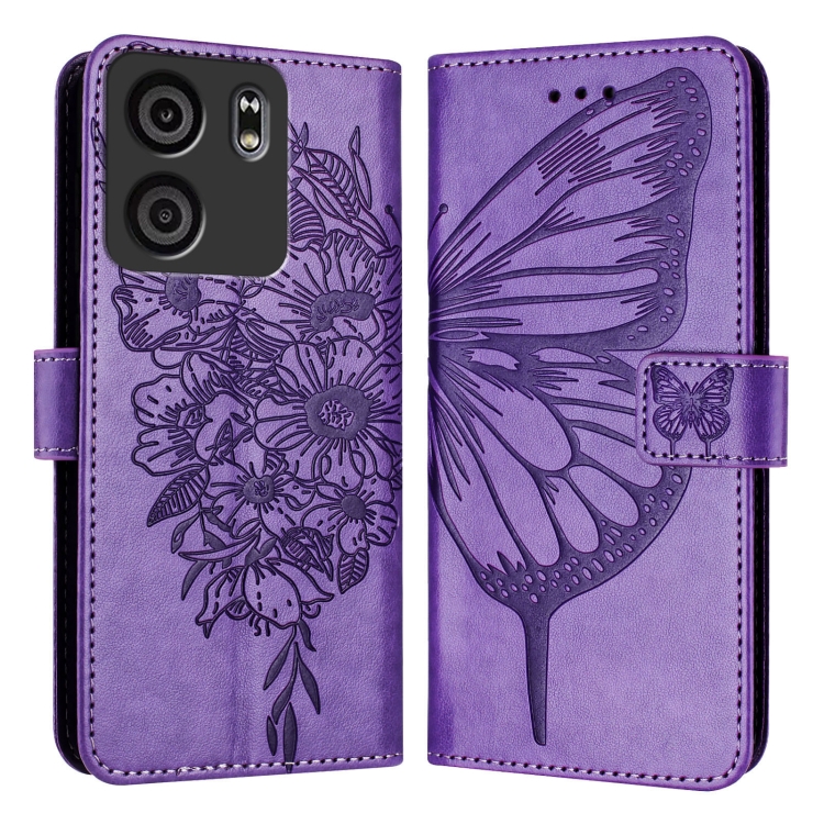 Funda de Cuero Blu View 5 Diseño Mariposa Relieve (Morado Claro)