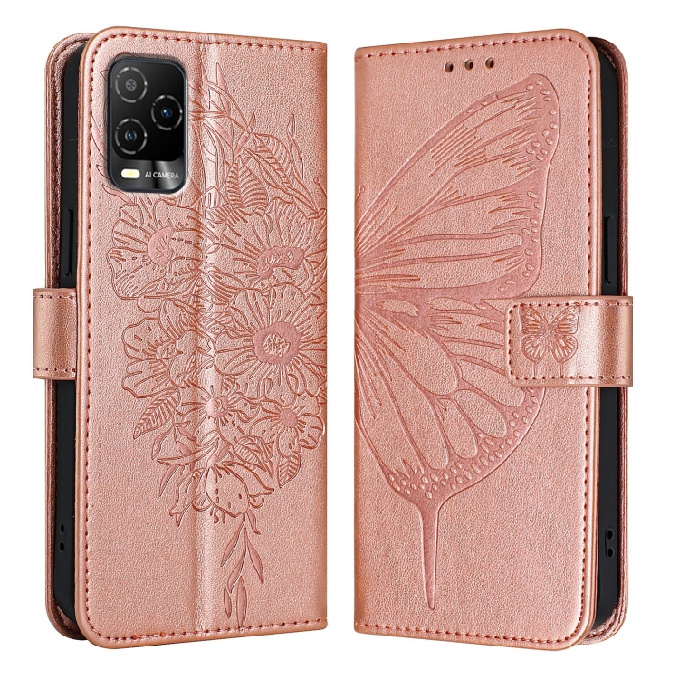 Funda de Cuero Blu View 5 Pro Diseño Mariposa en Relieve (Oro Rosa)