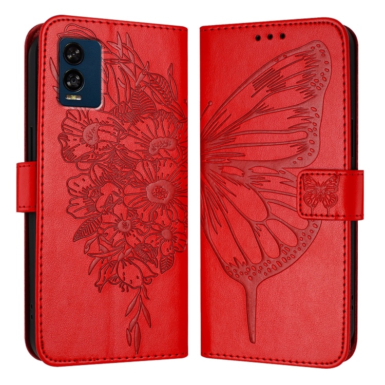 Funda de Cuero Blu View Speed 5G Diseño Mariposa Relieve (Roja)
