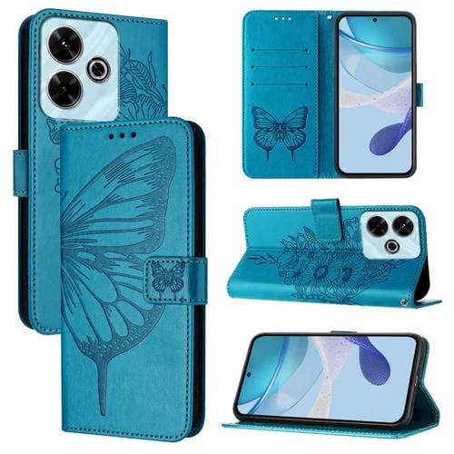 Funda de Cuero con Diseño de Mariposa En Relieve para Redmi 13 4G (Azul)
