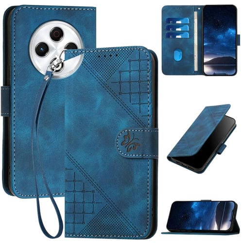 Funda de Cuero para Tecno Spark 30 4G con Diseño de Mariposa en Relieve y Cordón (Azul Oscuro)