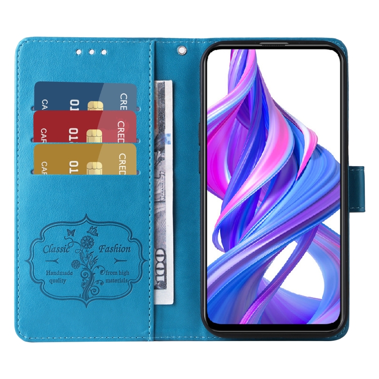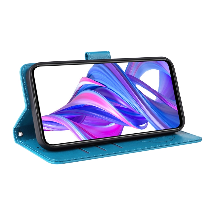Funda de Cuero para Honor X9 5G/4G/X30 con Diseño de Mariposas y Flores en Relieve (Azul)