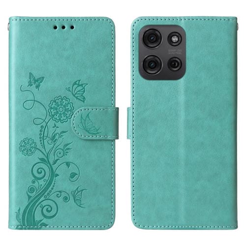 Funda de Cuero para Motorola Moto G75 5G con Diseño de Mariposas y Flores en Relieve (Verde)
