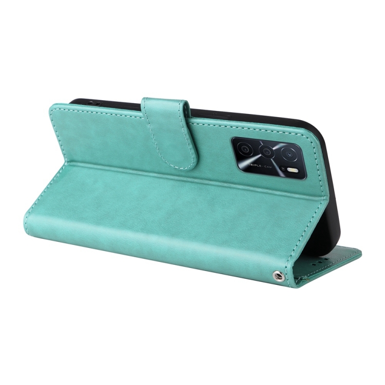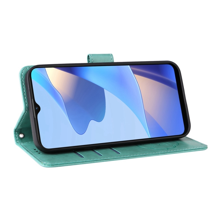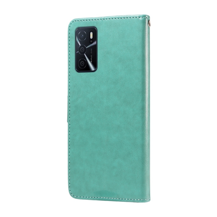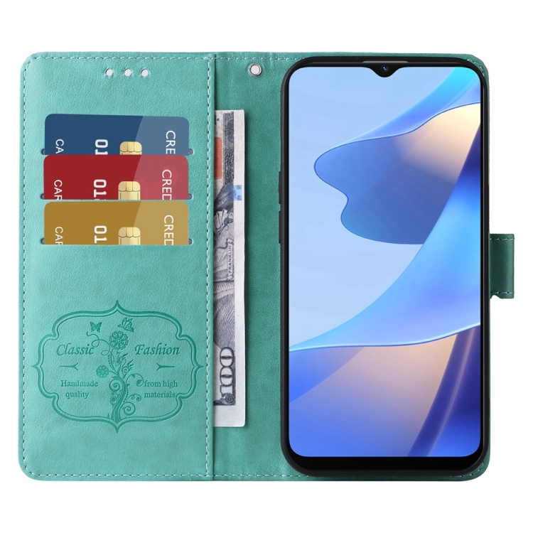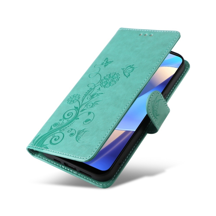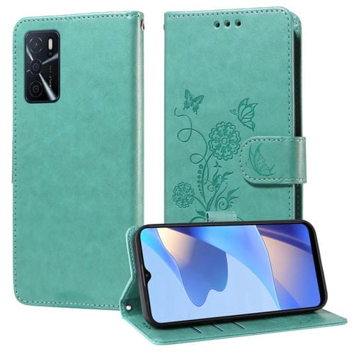 Funda de Cuero con Diseño de Mariposas y Flores En Relieve para Oppo A54 4G / A54S / A55 4G / 5G / A53S 5G (Verde)