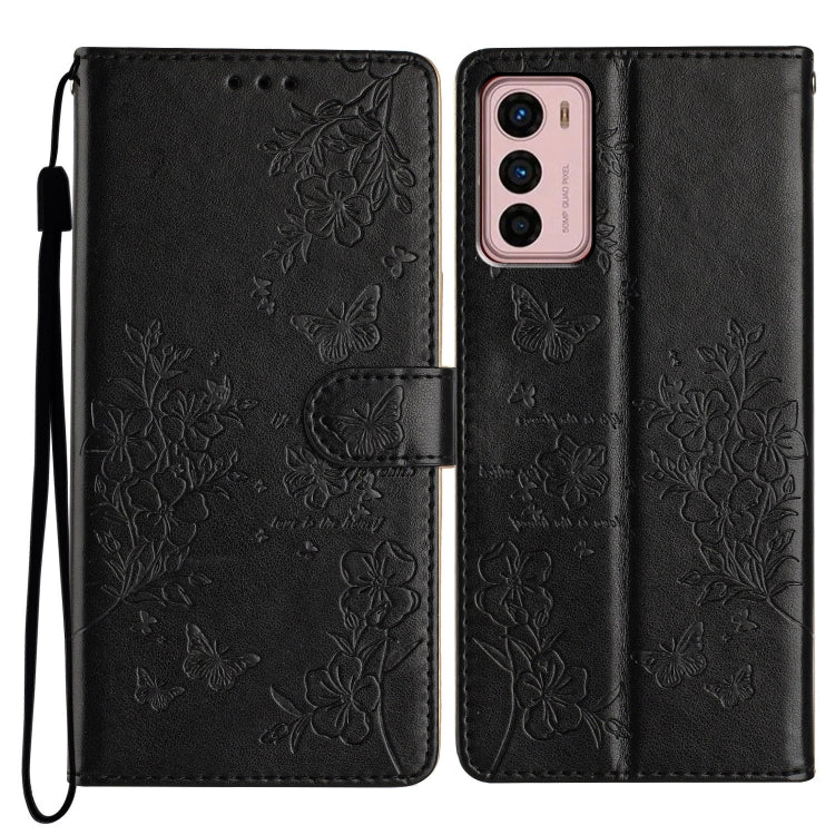 Funda de Cuero Motorola Moto G42 con Diseño de Mariposas y Flores (Negra)