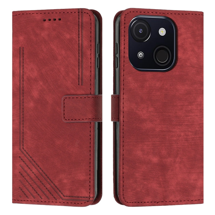 Funda de Cuero Itel A50C con Diseño de Rayas y Cordón (Rojo)