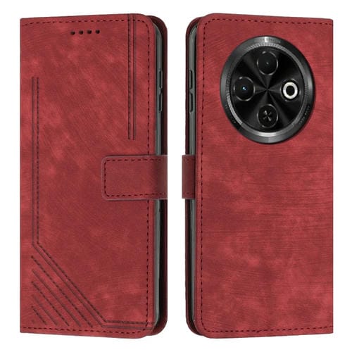 Funda de Cuero para Tecno Spark 30C con Diseño de Rayas y Tacto Agradable (Rojo)