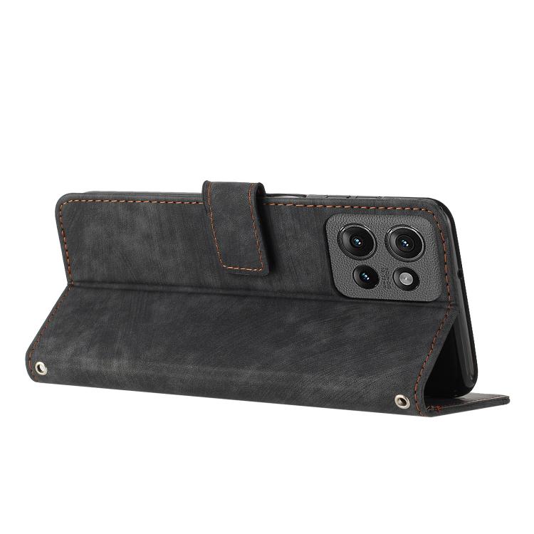 Funda de Cuero Motorola Moto G 5G 2025 con Diseño de Rayas y Cordón (Negro)