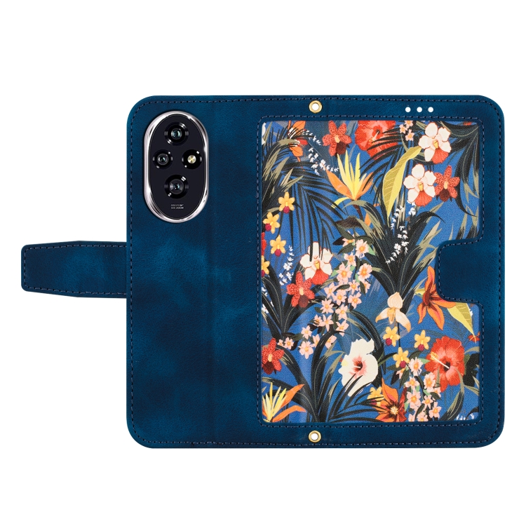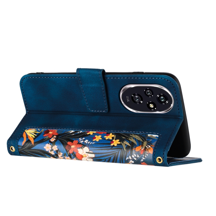 Funda de Cuero Honor 200 con Diseño Floral y Cordón (Azul Oscuro)