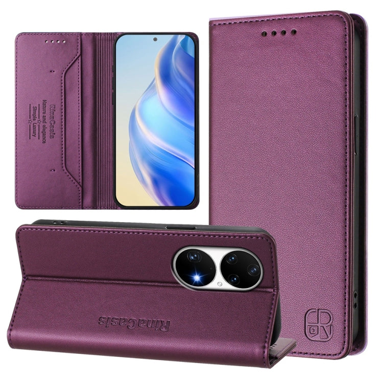 Funda de Cuero con Doble Pliegue y Succión Magnética para Huawei P50 Pro Rc01 (Violeta)