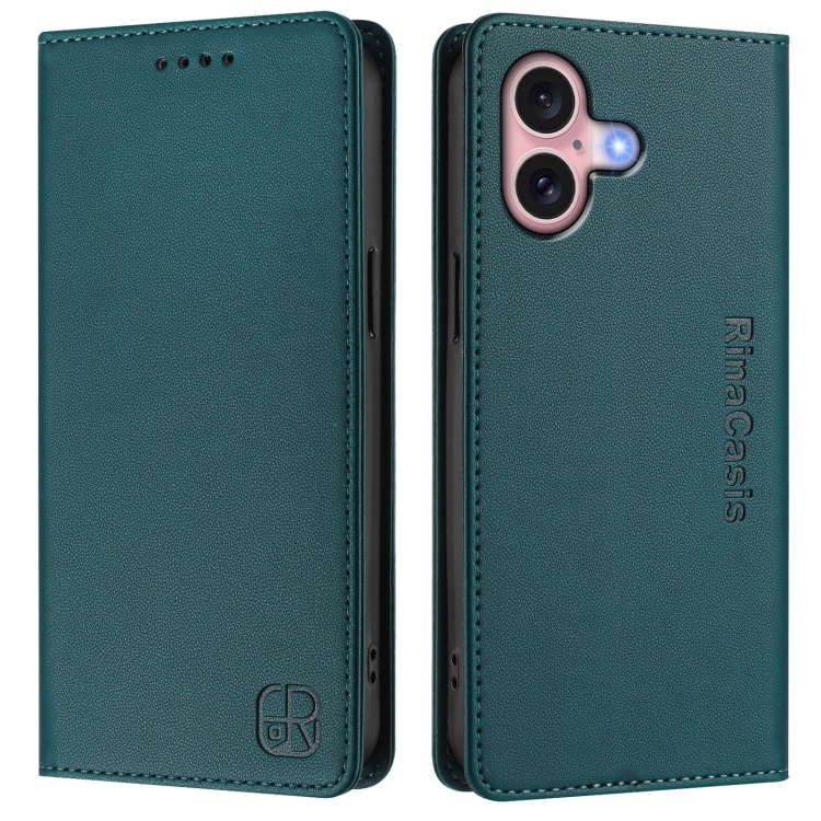 Funda de Cuero para iPhone 16 Plus Rc01 Doble Pliegue Succión Magnética (Verde Oscuro)