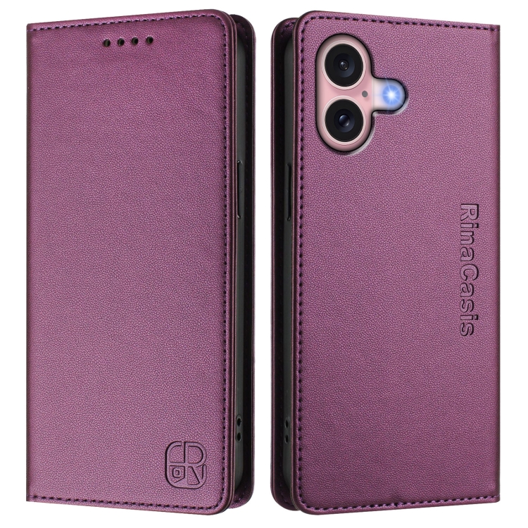 Funda de Cuero iPhone 16 Plus Rc01 Doble Pliegue Succión Magnética (Violeta)
