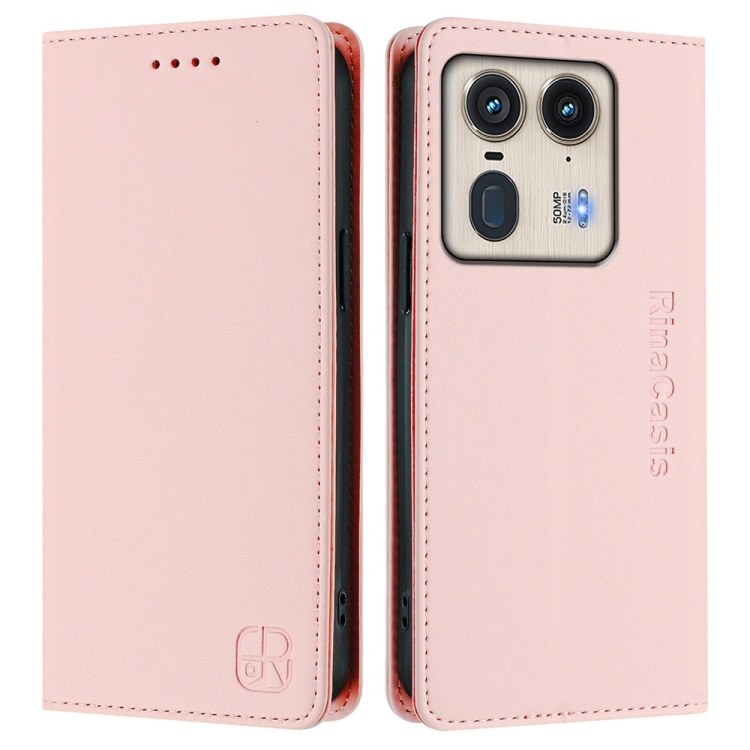 Funda de Cuero con Doble Pliegue y Succión Magnética para Motorola Edge 50 Ultra/X50 Ultra Rc01 (Rosa)