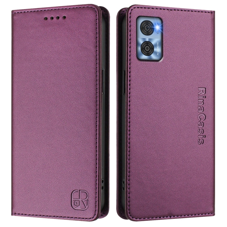 Funda de Cuero con Doble Pliegue y Succión Magnética para Motorola Moto E22 / Moto E22I Rc01 (Violeta)