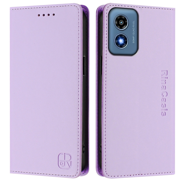 Funda de Cuero con Doble Pliegue y Succión Magnética para Motorola Moto G Play 2024 y Moto G 5G 2024 Rc01 (Morado Claro)