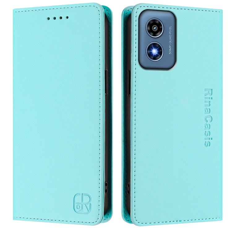 Funda de Cuero con Doble Pliegue y Succión Magnética para Motorola Moto G Play 2024 y Moto G 5G 2024 Rc01 (Verde Menta)