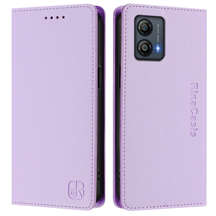 Funda de Cuero con Doble Pliegue y Succión Magnética para Motorola Moto G13/G23/G53 5G Rc01 (Morado Claro)