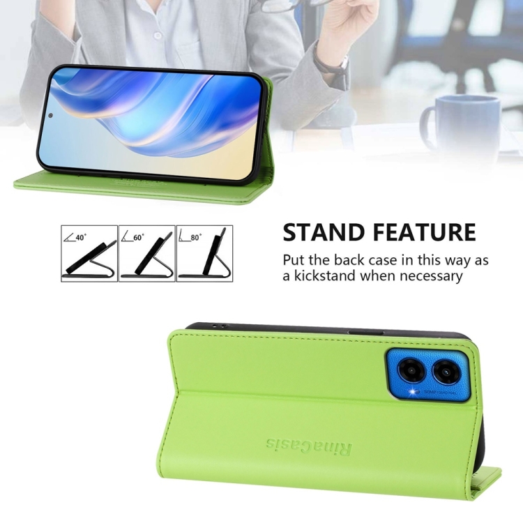 Funda de Cuero Motorola Moto G45 5G G34 5G Rc01 Doble Pliegue Succión Magnética (Verde Hierba)