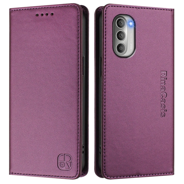 Funda de Cuero Motorola Moto G51 5G Rc01 con Doble Pliegue y Succión Magnética (Violeta)