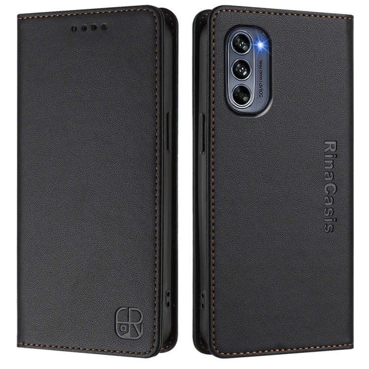 Funda de Cuero con Doble Pliegue y Succión Magnética para Motorola Moto G62 5G Rc01 (Negra)