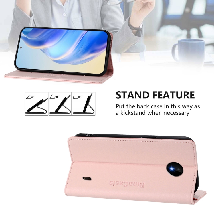Funda de Cuero con Doble Pliegue y Succión Magnética para Nokia C10/C20 Rc01 (Rosa)