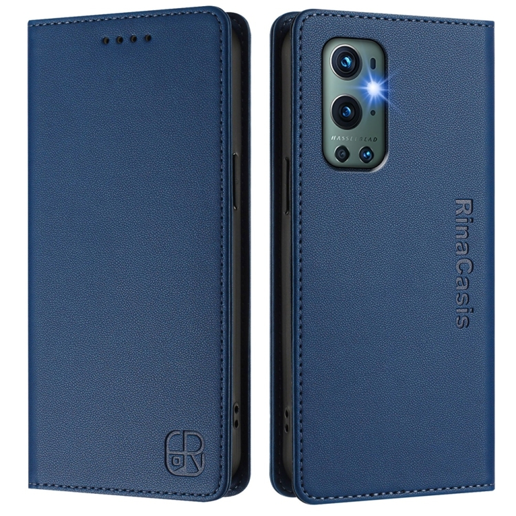 Funda de Cuero con Doble Pliegue y Succión Magnética para OnePlus 9 Pro Rc01 (Azul Oscuro)