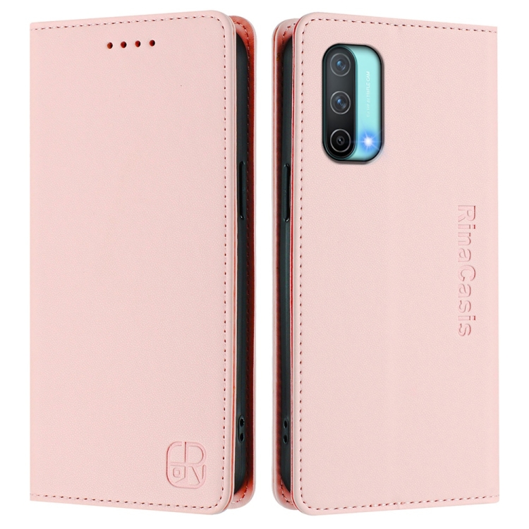 Funda de Cuero con Doble Pliegue y Succión Magnética para OnePlus Nord Ce 5G Rc01 (Rosa)