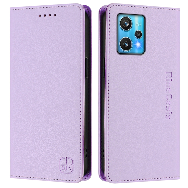 Funda de Cuero con Doble Pliegue y Succión Magnética para Realme 9 Pro+ 5G / 9 4G Global Rc01 (Morado Claro)