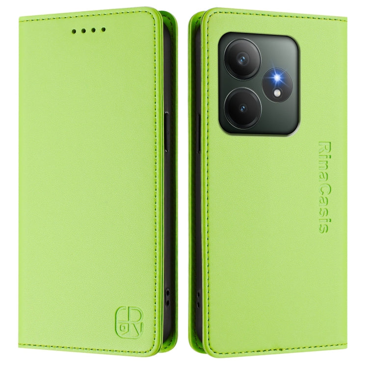 Funda de Cuero con Doble Pliegue y Succión Magnética para Realme Gt 6 5G / Gt 6T 5G Global Rc01 (Verde Hierba)