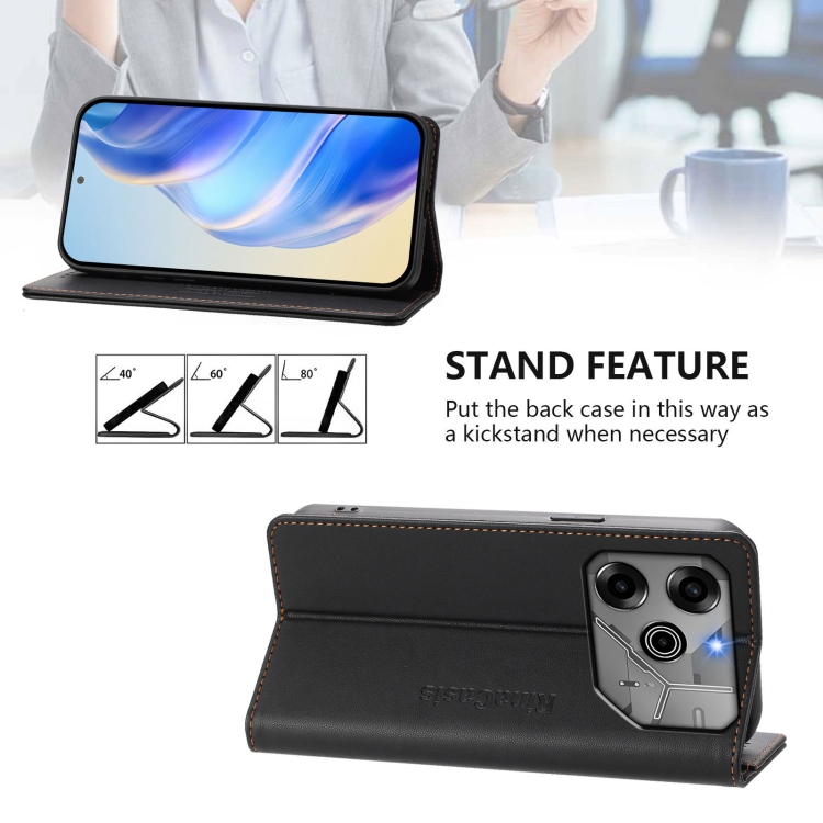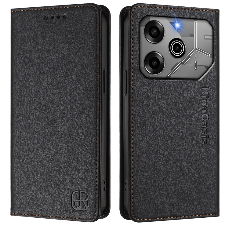 Funda de Cuero con Doble Pliegue y Cierre Magnético RFID para Tecno Pova 6 5G / 6 Pro 5G Rc01 (Negra)