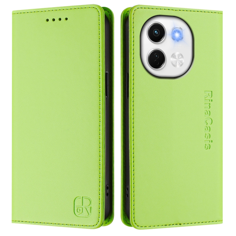 Funda de Cuero con Doble Pliegue y Succión Magnética RFID para Tecno Spark 30 5G y Pova 6 Neo 5G Rc01 (Verde Hierba)