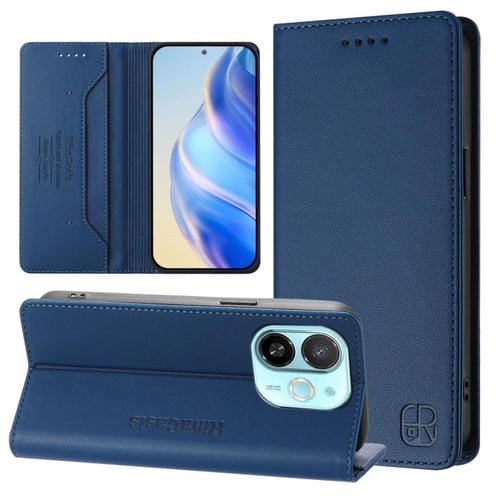 Funda de Cuero con Doble Pliegue y Succión Magnética Rfid para Tecno Spark 30C 5G y Pop 9 5G Rc01 (Azul Oscuro)