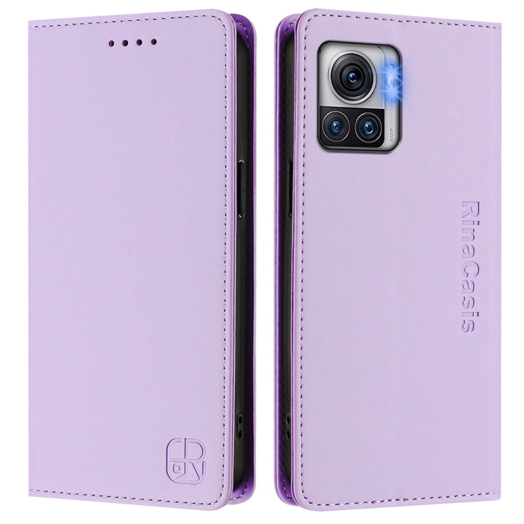 Funda de Cuero con Doble Pliegue y Succión Magnética para Motorola Moto X30 Pro/Edge 30 Ultra Rc01 (Morado Claro)