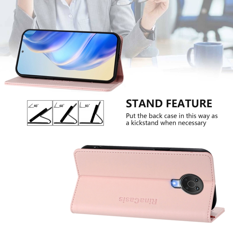 Funda de Cuero con Doble Pliegue y Succión Magnética para Teléfono Nokia 6.3/G20/G10 Rc01 (Rosa)