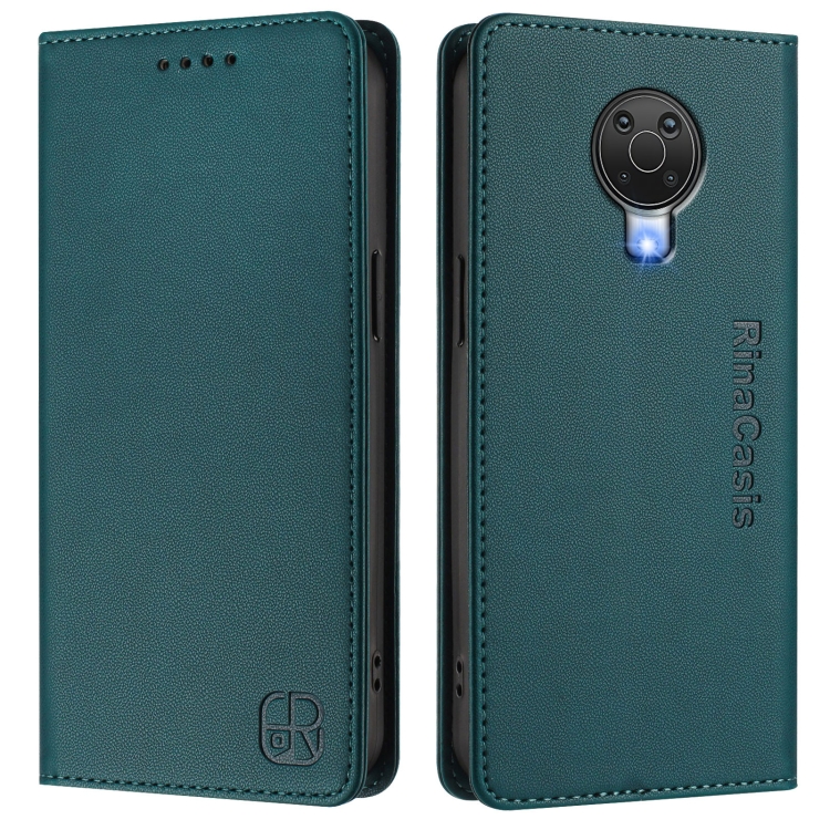 Funda de Cuero Nokia 6.3/G20/G10 Rc01 con Doble Pliegue y Succión Magnética (Verde Oscuro)