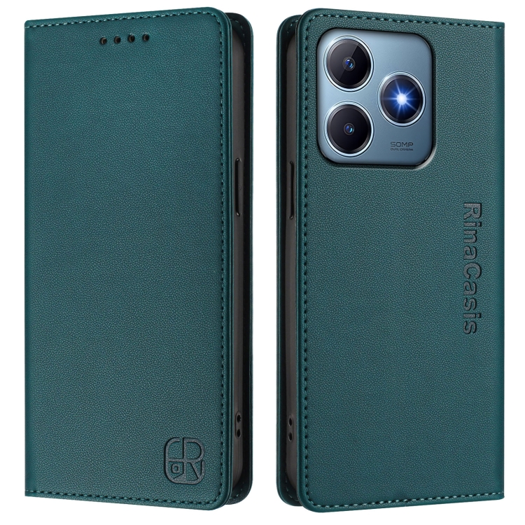 Funda de Cuero con Doble Pliegue y Succión Magnética para Teléfono Realme C63/C61 4G Global Rc01 (Verde Oscuro)