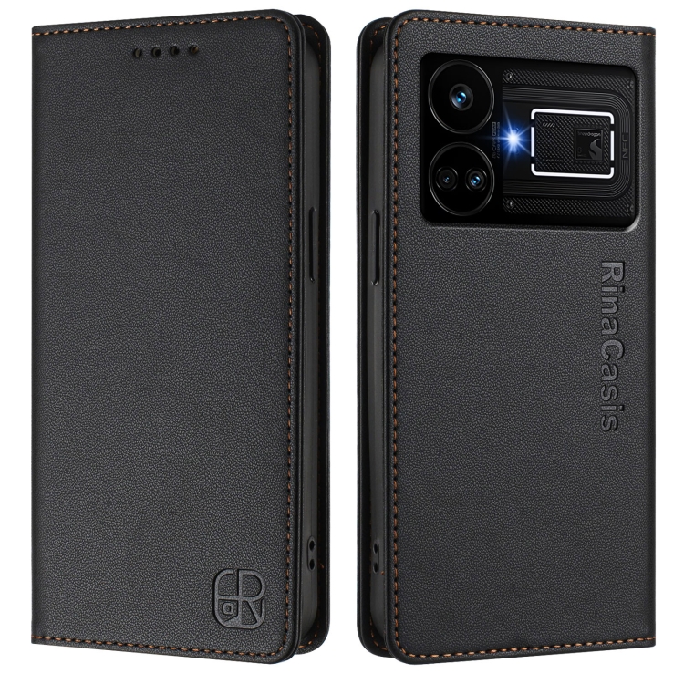 Funda de Cuero con Doble Pliegue y Succión Magnética para Teléfono Realme Gt5 5G / Gt5 5G 240W Rc01 (Negro)