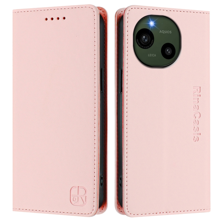Funda de Cuero con Doble Pliegue y Succión Magnética RFID para Sharp Aquos R9 Sh-51E Rc01 (Rosa)