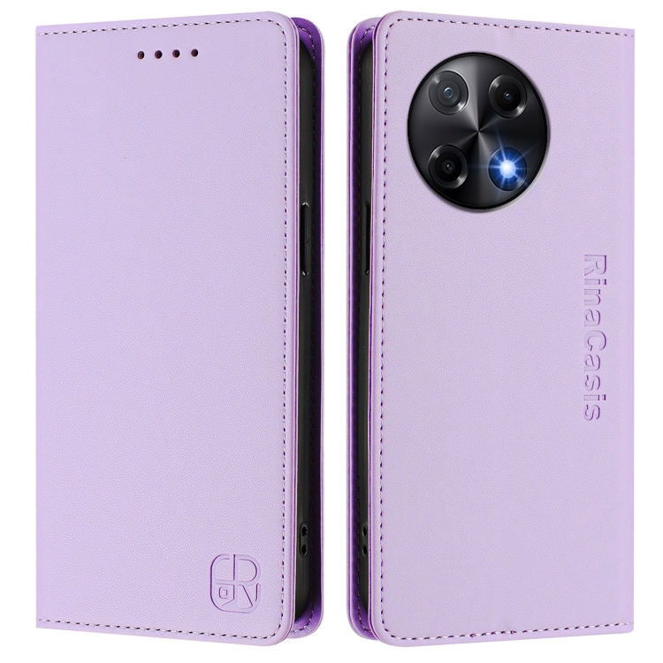 Funda de Cuero con Doble Pliegue y Succión Magnética RFID para Tecno Camon 30S / 30S Pro 5G Rc01 (Morado Claro)