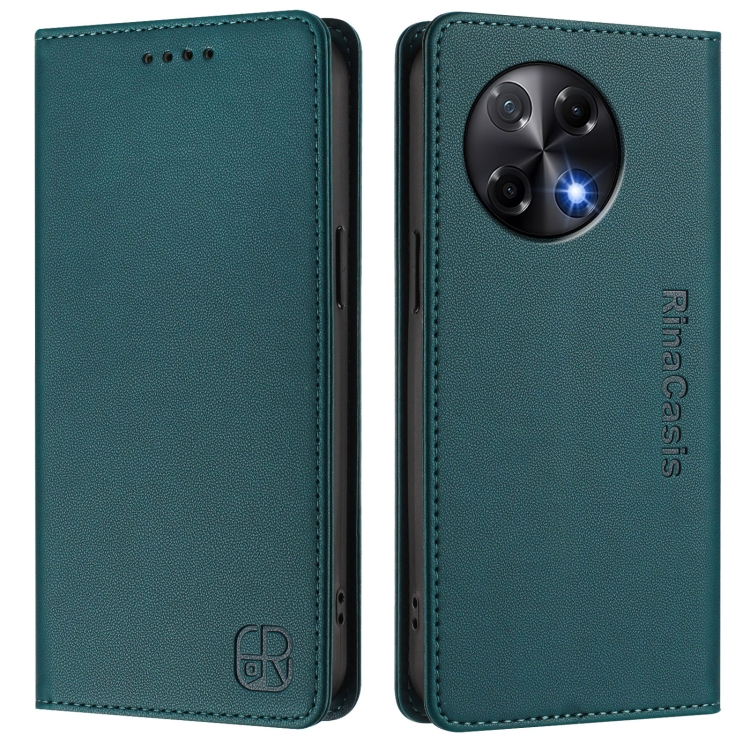 Funda de Cuero Rfid para Tecno Camon 30S y 30S Pro 5G Rc01 con Doble Pliegue y Succión Magnética (Verde Oscuro)