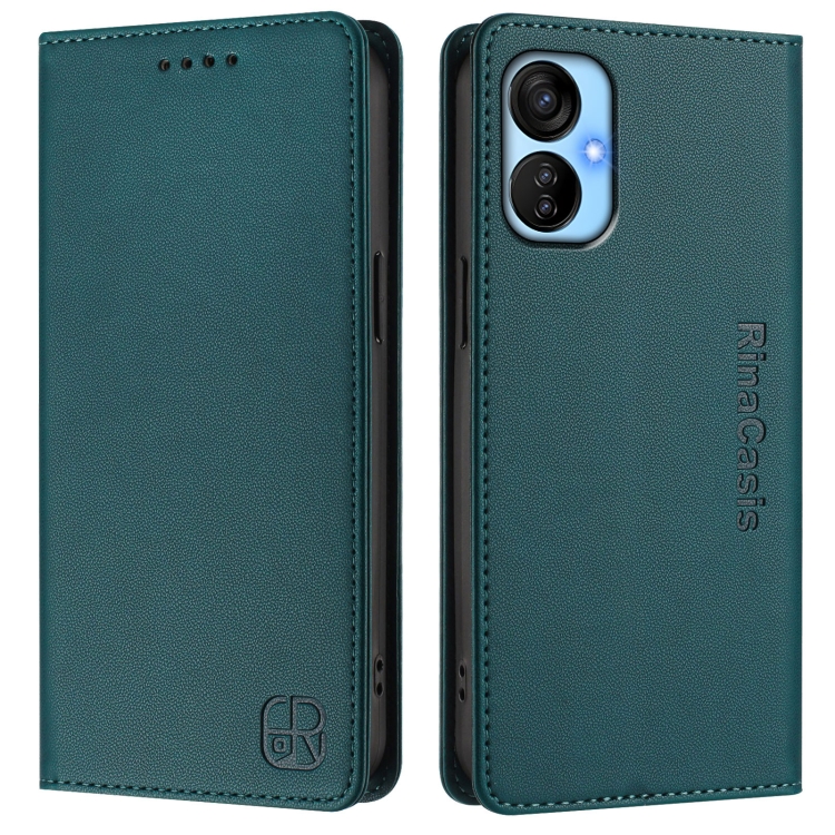 Funda de Cuero Rfid para Tecno Spark 9T/9 Pro Rc01 con Doble Pliegue y Succión Magnética (Verde Oscuro)